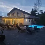 Котедж Mlynski apartment features a balcony, a terrace, and a living room and looks out onto the pool. For added convenience, a walk-in shower and a separate toilet are available at this accommodation. Hair dryers, bath sheets, and slippers are also included in the bathroom.
